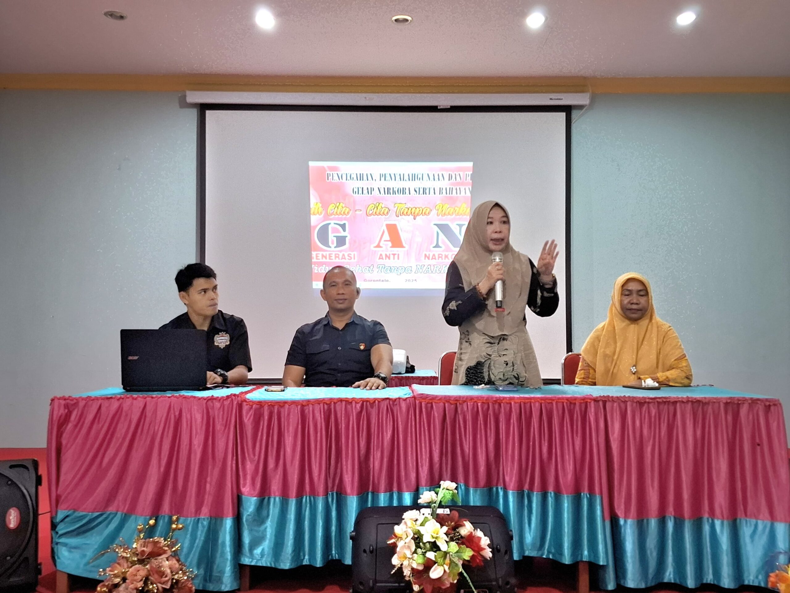 Tim sosialisasi dipimpin oleh PS. Kabag Bin Ops Ditresnarkoba Polda Gorontalo IPDA Ahludin Utina, S.IP, yang menyampaikan materi terkait berbagai aspek P4GN, termasuk jenis-jenis narkotika, dampak negatif penyalahgunaan, serta strategi pencegahan yang dapat dilakukan di lingkungan sekolah dan masyarakat. Dalam penyampaiannya, IPDA Ahludin menekankan pentingnya membangun kesadaran sejak dini agar para siswa tidak mudah terpengaruh oleh peredaran gelap narkotika yang kian mengkhawatirkan.